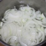 Cebule obierz, pokrój w piórka, a następnie zalej wrzątkiem. Po 1 minucie odcedź i pozostaw do przestygnięcia. Ten zabieg ma na celu zmiękczenie cebuli i pozbawienie jej nadmiernej ostrości.