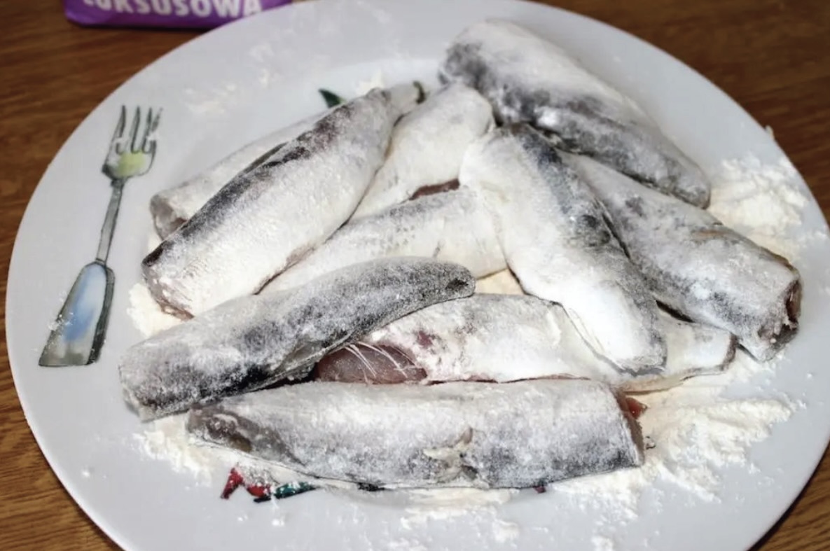 Bezpośrednio przed smażeniem rybki posól i obtocz w mące pszennej.