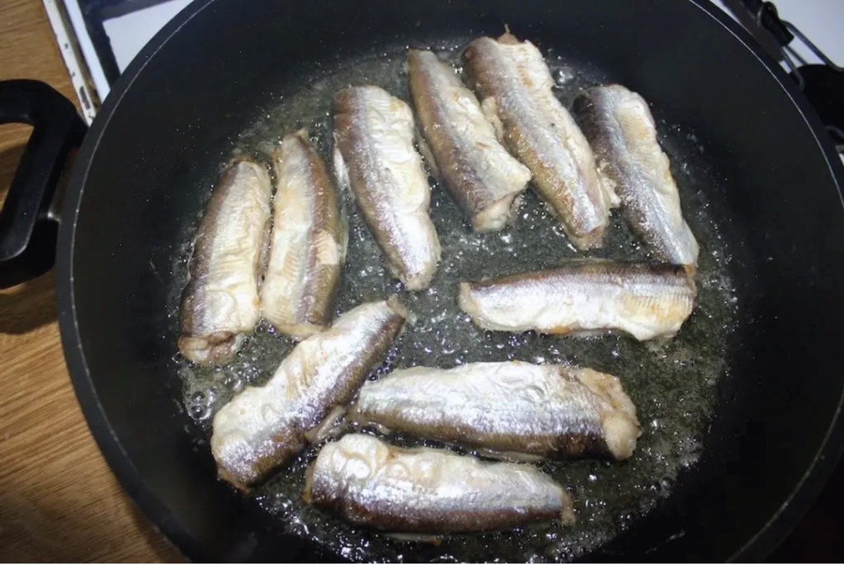 Otrzep sielawy z nadmiaru mąki, a następnie smaż na mocnym ogniu na oleju roślinnym (olej powinien sięgać mniej więcej do połowy ryb) przez 2-3 minuty, aż staną się lekko złociste.