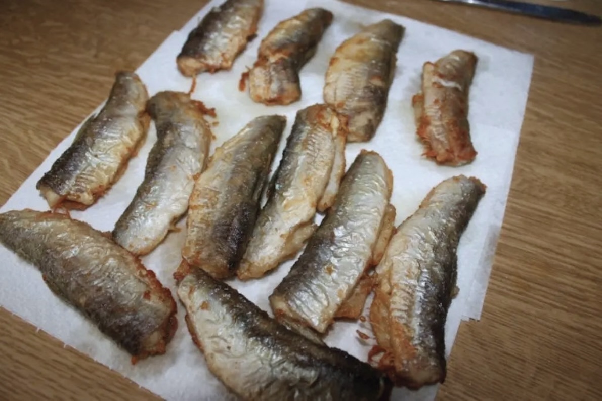 Usmażone ryby odciągnij z nadmiaru tłuszczu na ręcznikach papierowych, a następnie pozostaw do przestygnięcia.