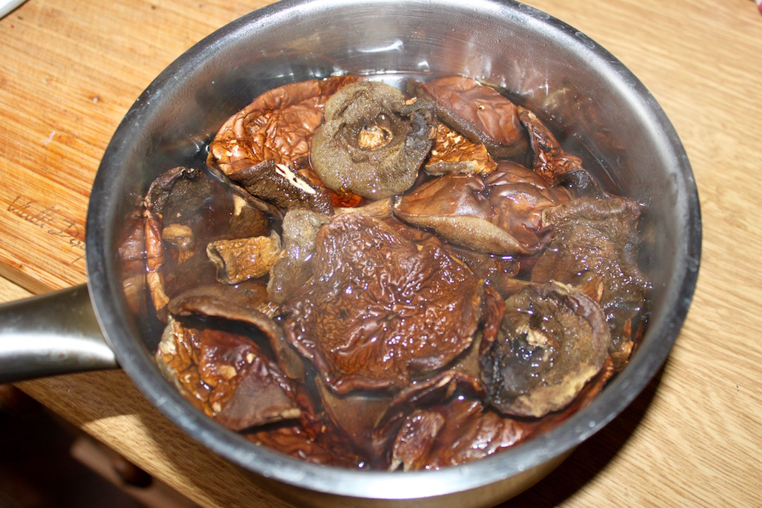 Namocz kilka suszonych grzybów w gorącej wodzie.
