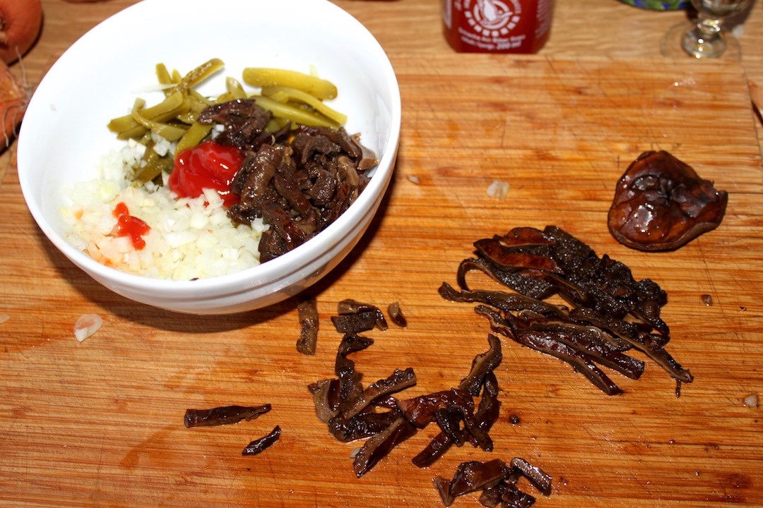Odstaw do przestudzenia, a następnie pokrój grzyby w paseczki.