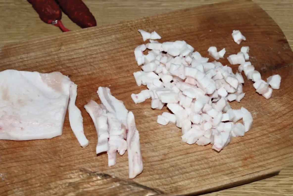 Słoninę pokrój w drobną kostkę.