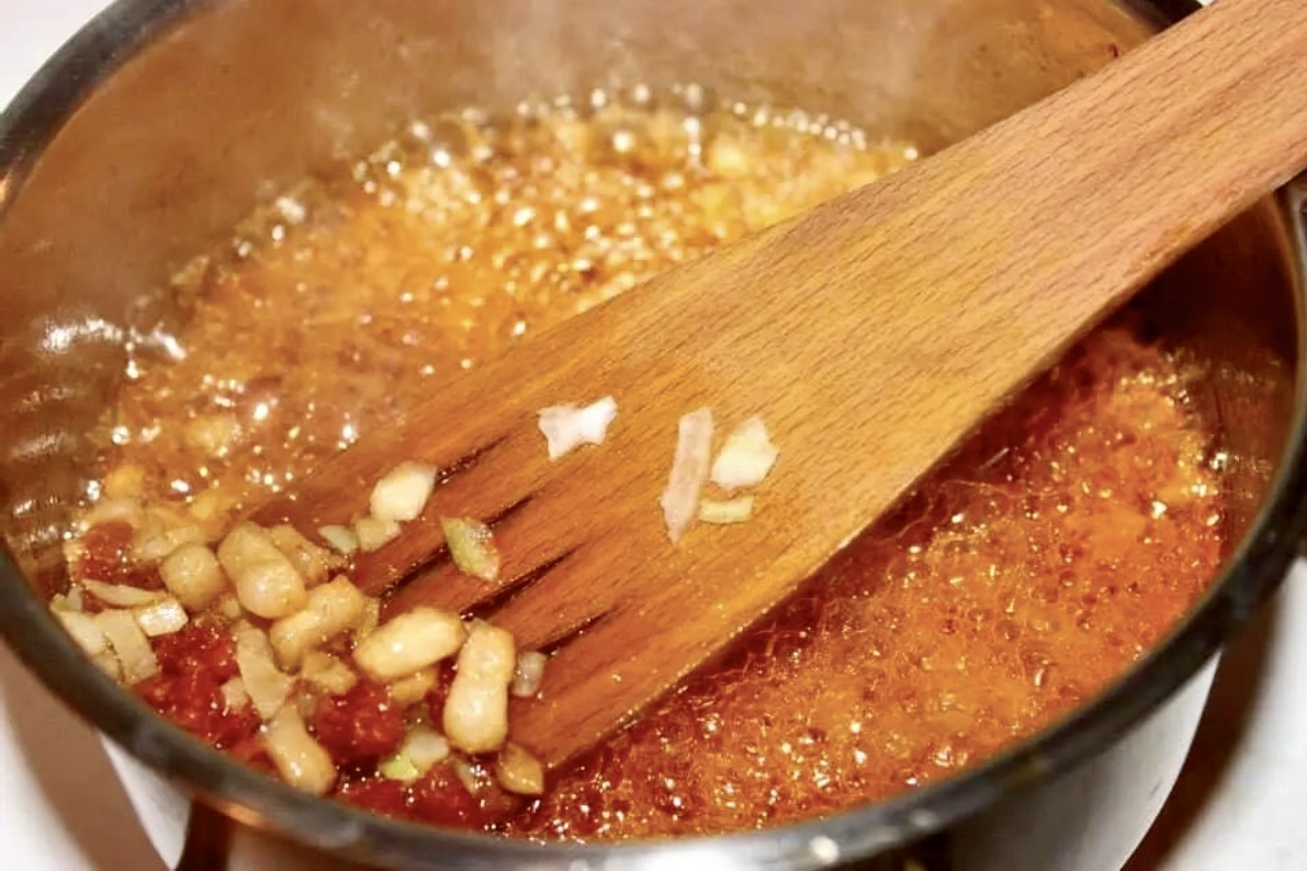 Wytapiaj wszystko na niezbyt mocnym ogniu (wystarczy około 10 minut wytapiania), uważając, aby cebula się nie przypaliła.