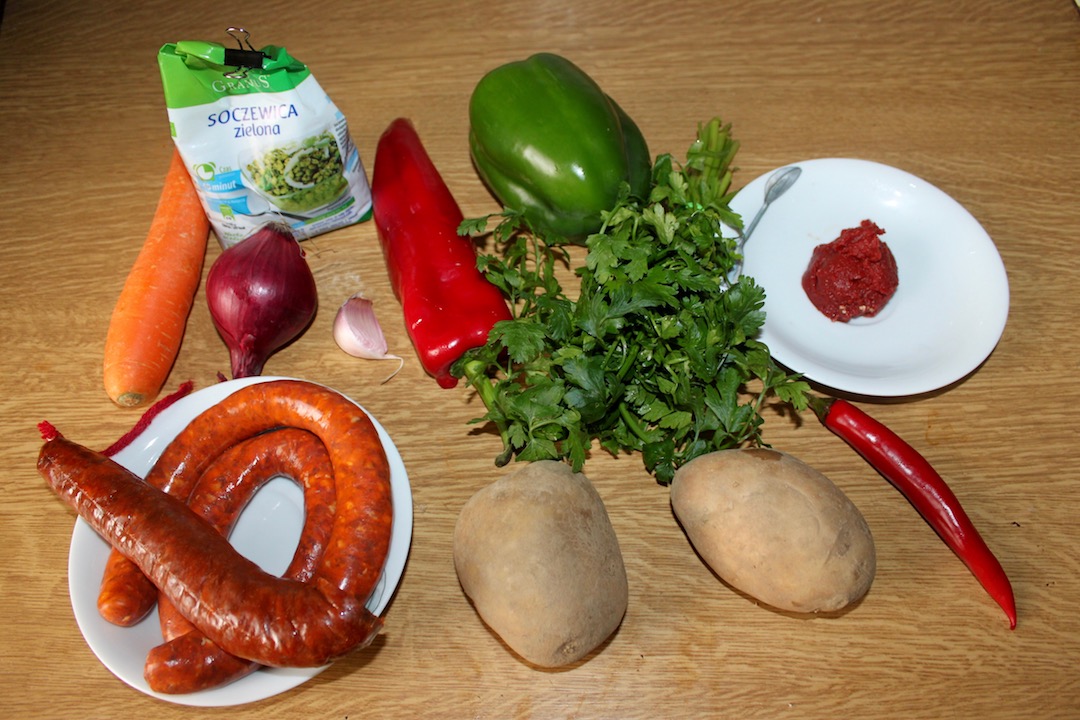 2 surowe paprykowane kiełbaski lub kawałek wędzonki (według wyboru)