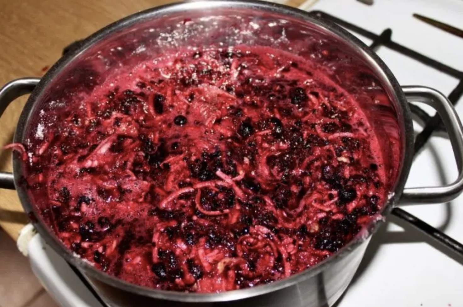 Przecedzanie: Gdy owoce się rozpadną i soku będzie sporo, przetrzyj wszystko przez drobne sito. Jeśli chcesz uzyskać klarowny sok, dodatkowo przelej go przez gazę.