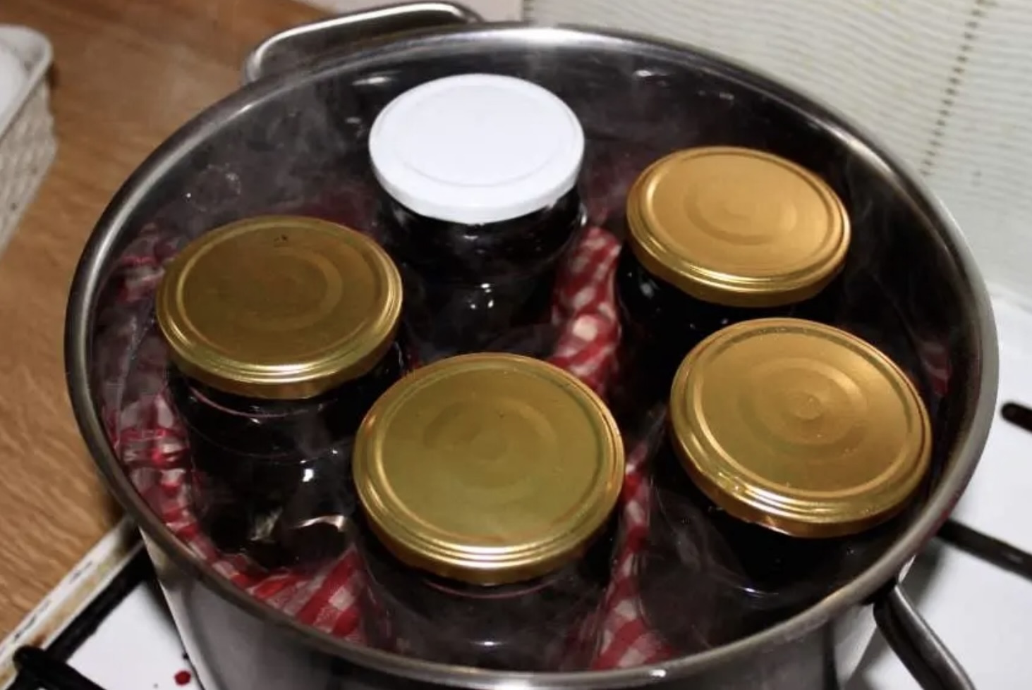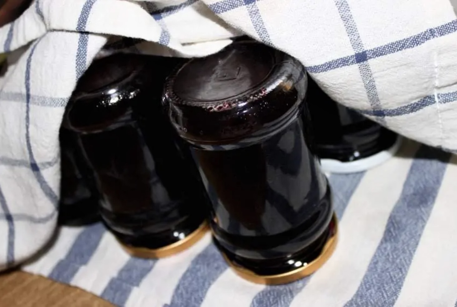 Ostudzenie: Wyjmij słoiki z garnka, odwróć do góry dnem i ułóż każdy z nich na ściereczce. Przykryj drugą ściereczką i pozostaw do przestudzenia na drugi dzień.