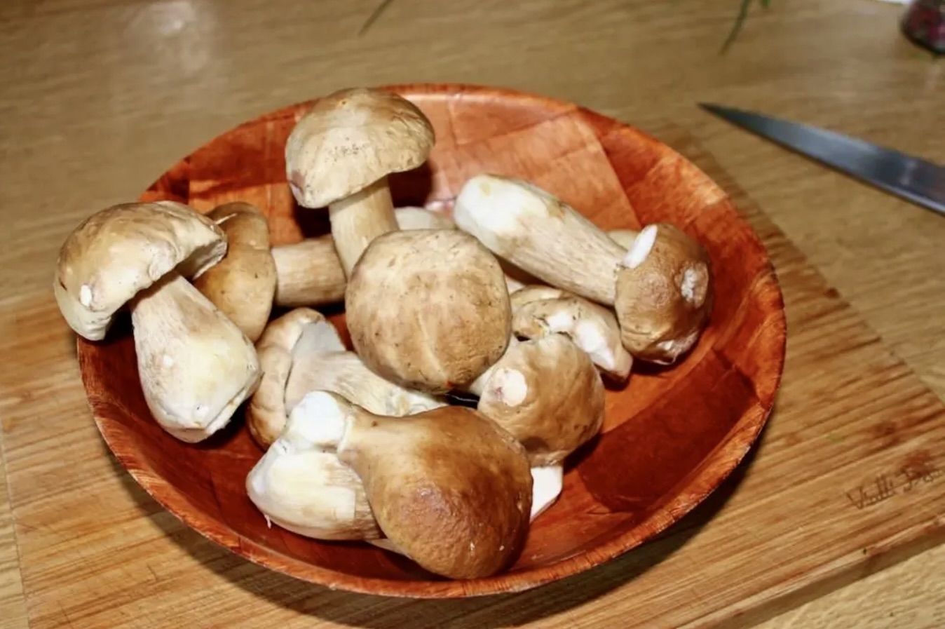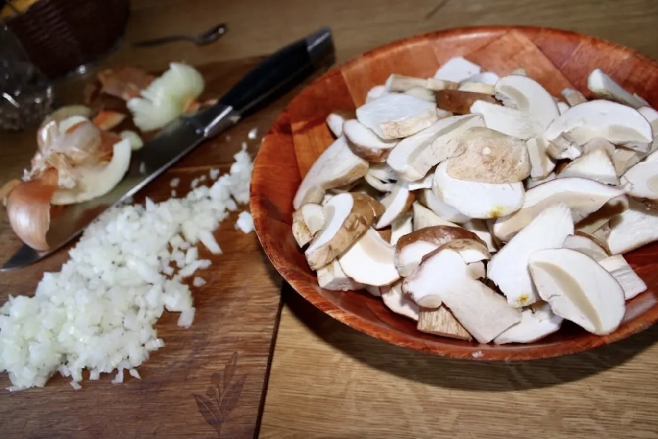 Przygotowanie grzybów: Prawdziwki pokrój wzdłuż w dość grube plastry, aby zachować ich kształt.