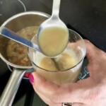 Zahartuj mieszankę: dolej do szklanki odrobinę gorącego sosu z garnka, wymieszaj i dopiero wtedy wlej całość do rondelka.