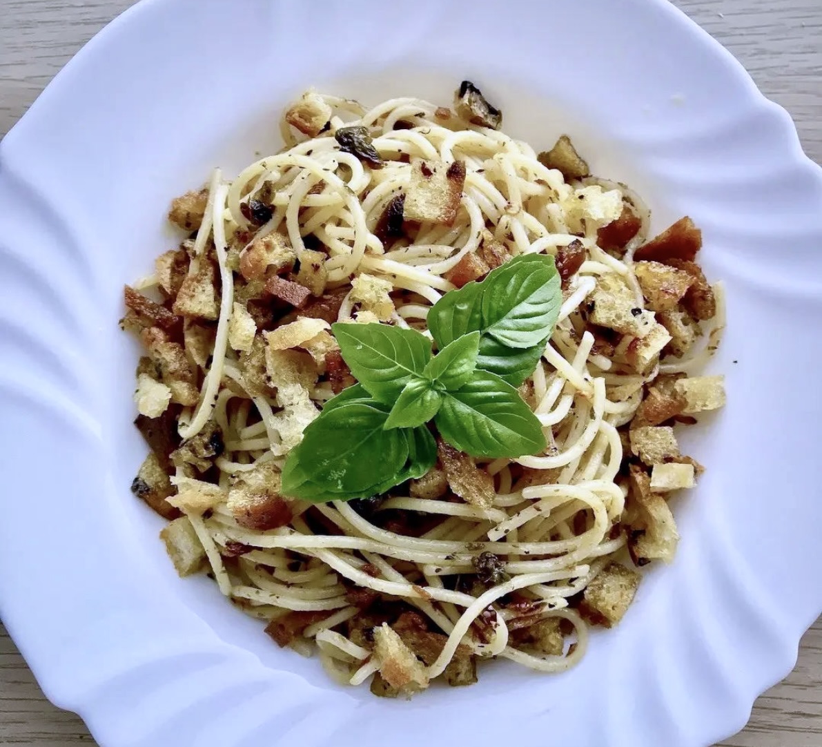 Sycące spaghetti alla San Gennaro pochodzi z Neapolu. Bazą dania jest sos przygotowany na oliwie z dodatkiem kaparów, sardeli i chilli z dodatkiem chrupiących grzanek z chleba. Spaghetti alla San Gennaro to jedno z najważniejszych dań kuchni neapolitańskiej. Kuchni znanej jako la cucina povera, czyli kuchni biedoty. Kampania, której stolicą jest Neapol od zawsze była jednym z biedniejszych regionów Włoch. Jedzenie zatem było proste i składało się jedynie z tych składników, które były tam dostępne. To przecież w Neapolu powstała pizza, to tutaj powstało również spaghetti alla San Gennaro. Nazwa odnosi się do najważniejszego patrona Neapolu, świętego Januarego. To proste, ale sycące danie, bez fajerwerków, ale pełne smaku i kalorii. Dziękujemy Ci Neapolu nie tylko za pizzę. Karmisz wybornie, choć skromnie. Smak jednak ważniejszy.