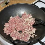 Zmielone mięso podsmaż na oliwie, aż lekko zbrązowieje (ok. 10 minut).