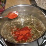 Dodaj przyprawy (oregano, zioła prowansalskie, bazylia, ostra i słodka papryka), koncentrat pomidorowy oraz przeciśnięty czosnek.
