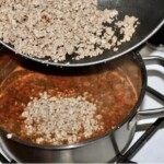 Sos posól, popieprz i dodaj do niego podsmażone mięso.