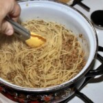 Ugotowany makaron wymieszaj w garnku z sosem.