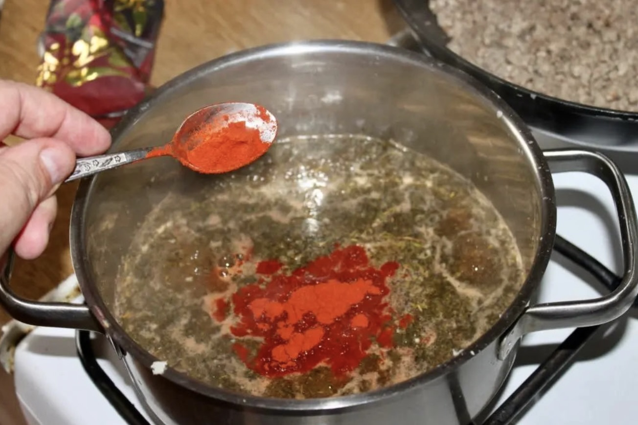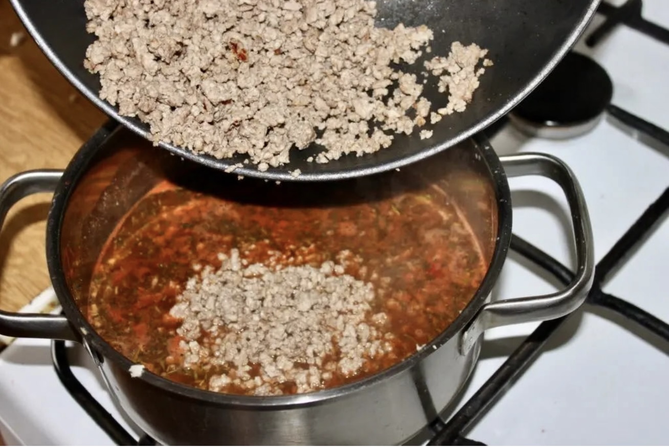 Sos posól, popieprz i dodaj do niego podsmażone mięso.
