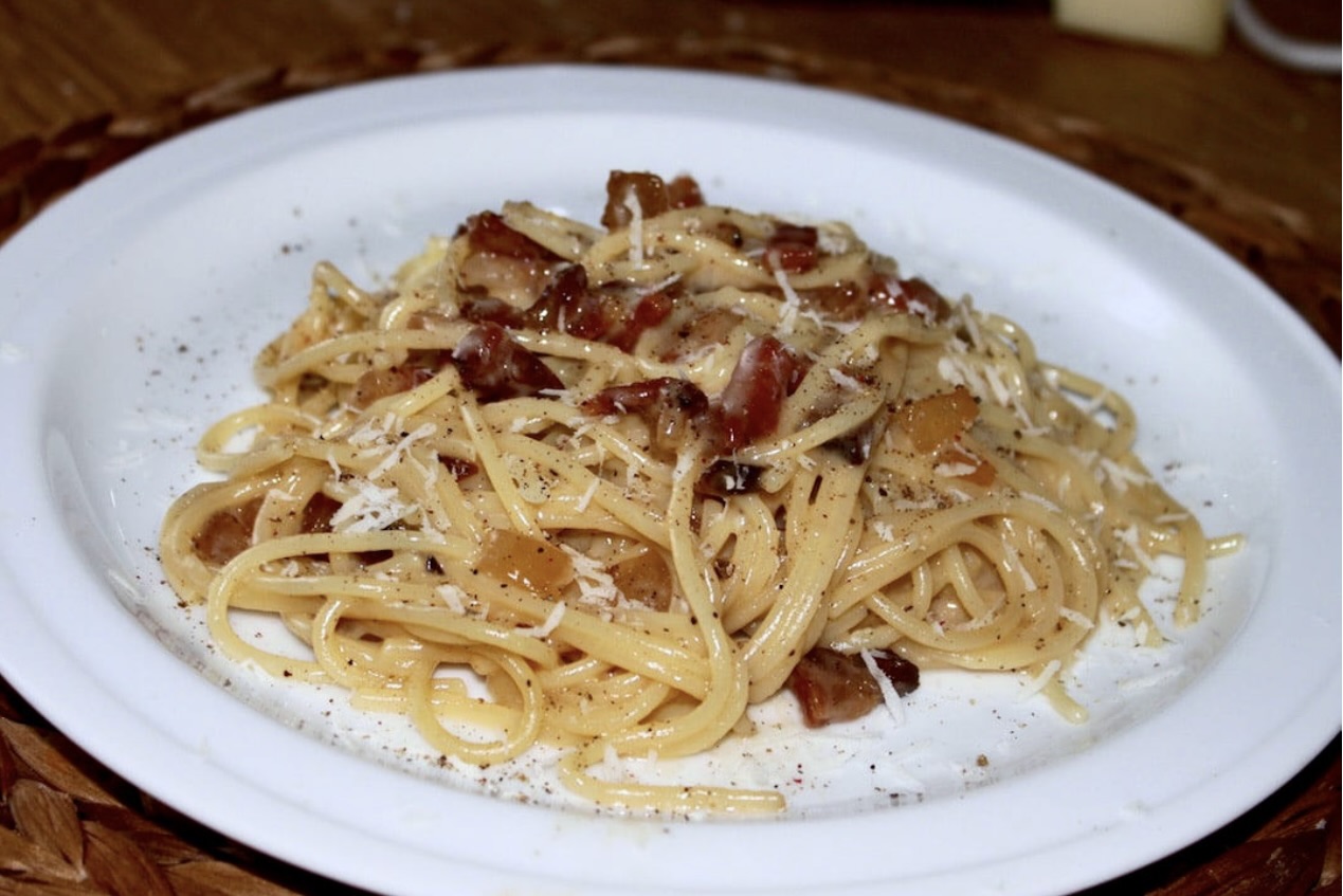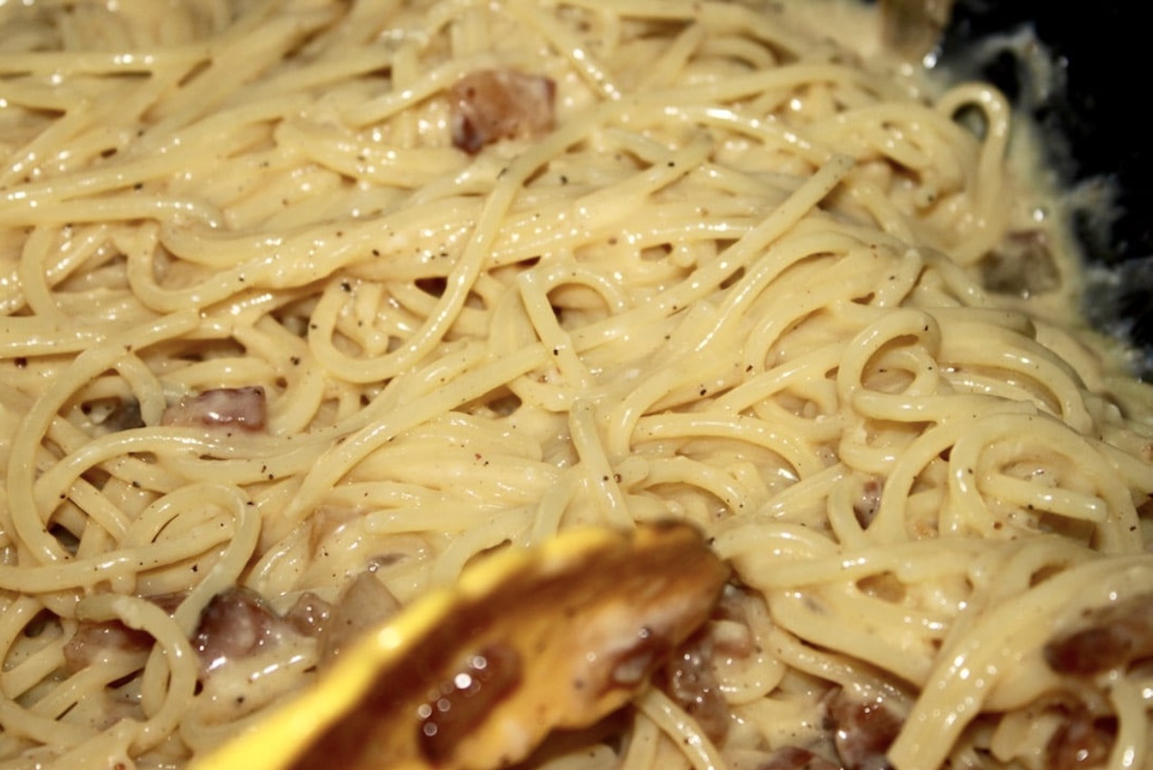 Spaghetti carbonara to pochodzący z Lacjum klasyk kuchni włoskiej. Według oryginalnego przepisu tę pastę przygotowuje się jedynie z guanciale, jajek i sera pecorino romano, a podaje z dodatkiem sporej ilości pieprzu. Jak to z popularnymi daniami bywa pojawiły się na całym świecie liczne modyfikacje tego dania. Przygotowuje się je więc, a to z dodatkiem czosnku, a to z natką pietruszki, czy z dodatkiem śmietany. Dobry kucharz zawodowy, ale i kompletny amator w kuchni, przy zachowaniu kilku zasad jest w stanie szybko i łatwo przygotować doskonałe spaghetti carbonara z aksamitnym sosem bez dodawania śmietany. O wyjątkowym smaku tego dania decyduje właśnie ten aksamitny sos. Jeżeli go zepsujesz danie spokojnie możesz wyrzucić do kosza.