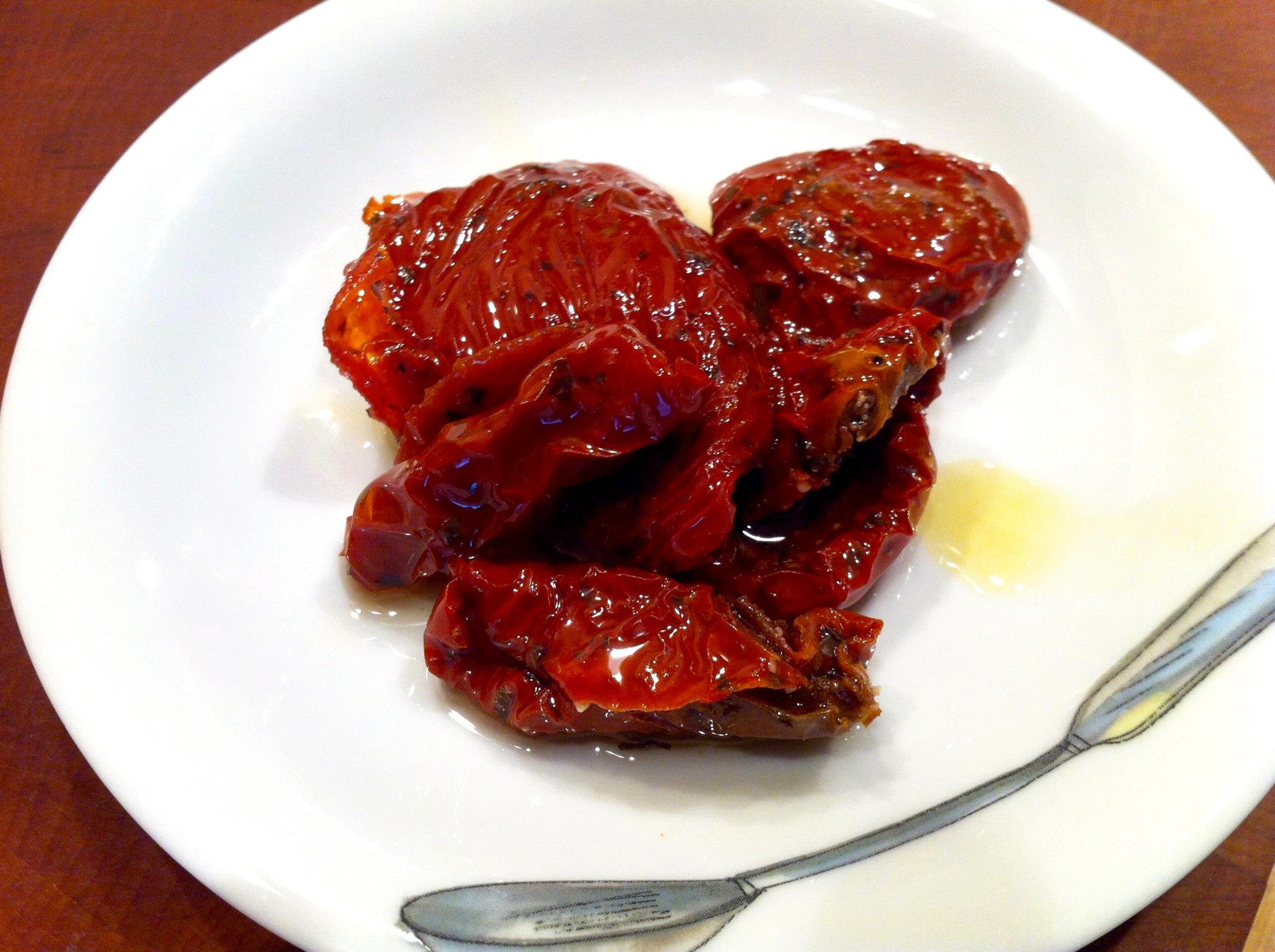 Przygotowanie pasty pomidorowej: Przygotuj około 6 suszonych pomidorów w oliwie. Przełóż suszone pomidory do malaksera, dodaj nieco oliwy ze słoiczka i zmiksuj na masę.
