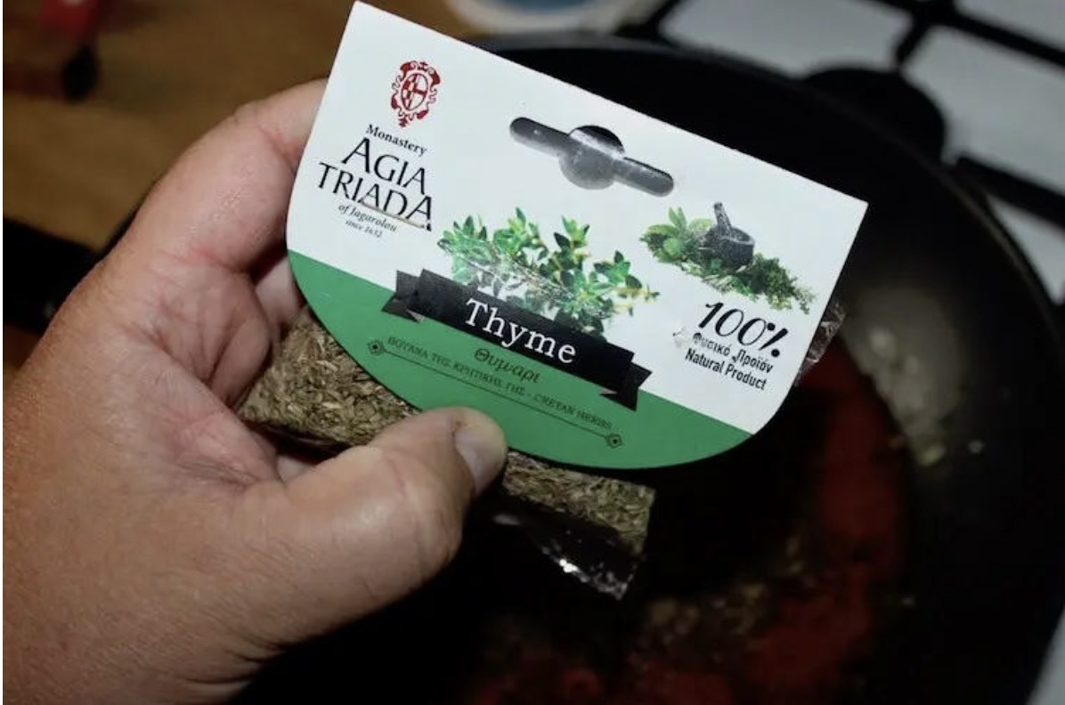 Zioła i przyprawy: suszone oregano (duża ilość), suszony tymianek, 1-2 laski cynamonu, 1 liść laurowy, opcjonalnie 1 suszona papryczka peperoncino.