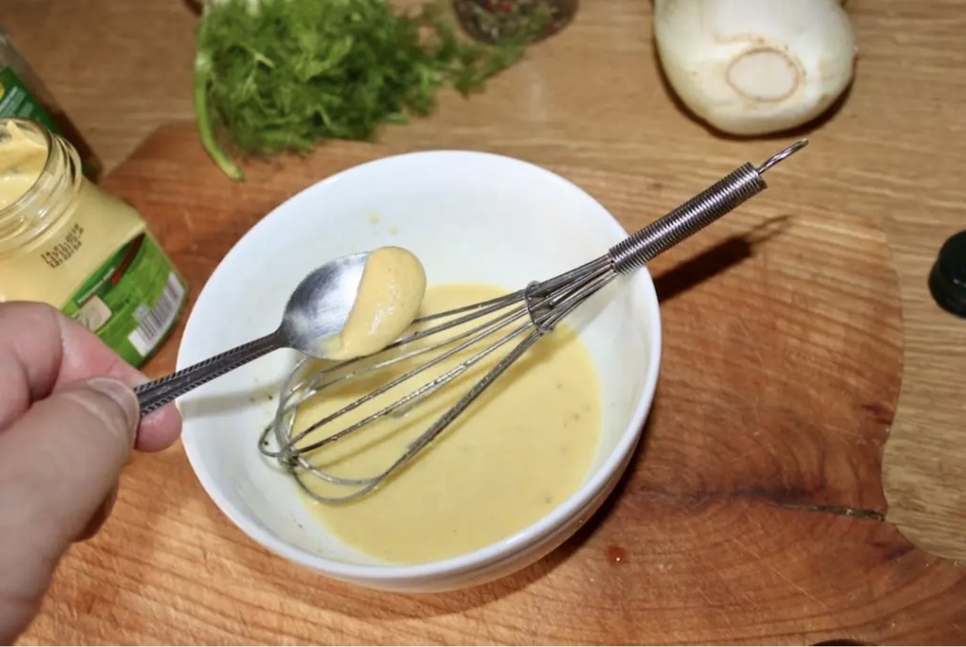 Spróbuj sosu i w razie potrzeby dodaj drugą łyżeczkę musztardy. Odstaw.