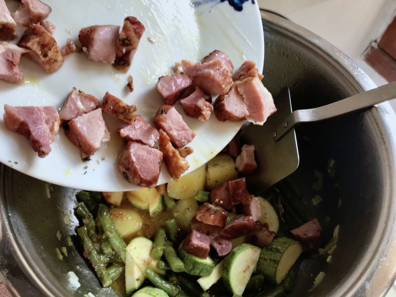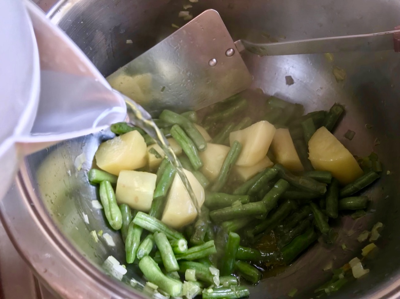 Dodanie fasolki i ziemniaków: