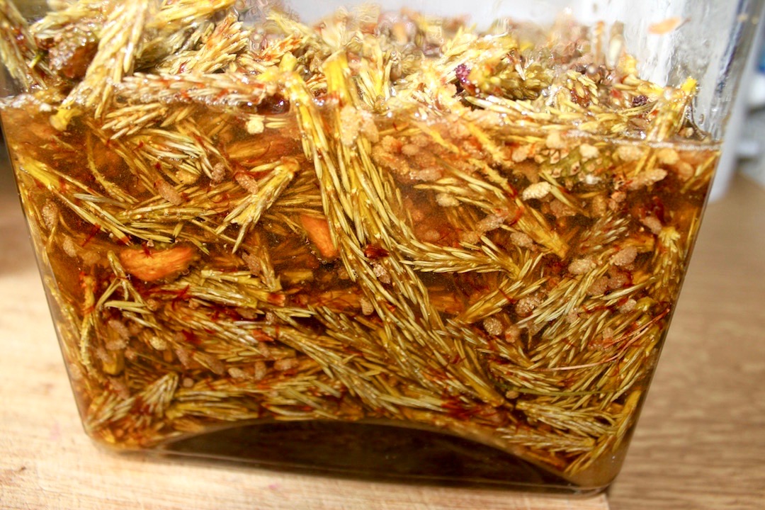 Zwykle syrop wytrąca się w przeciągu tygodnia, ale zależy to od stopnia nasłonecznienia miejsca, w którym słoik stoi oraz temperatury tego miejsca. Syrop można zlewać, gdy jest go prawie tyle, że zakrywa całą zawartość słoika. Zawartość słoika bardzo dokładnie przecedź przez gazę; syrop powinien mieć piękną, ciemną, bursztynową barwę.