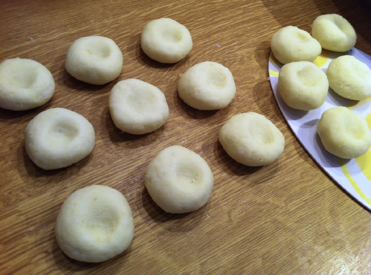 Formowanie: Formuj kulki, robiąc w każdej charakterystyczne wgłębienie palcem.