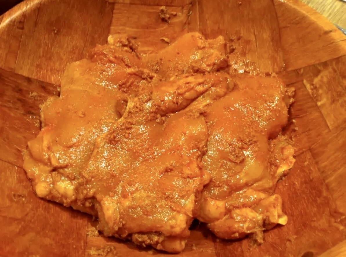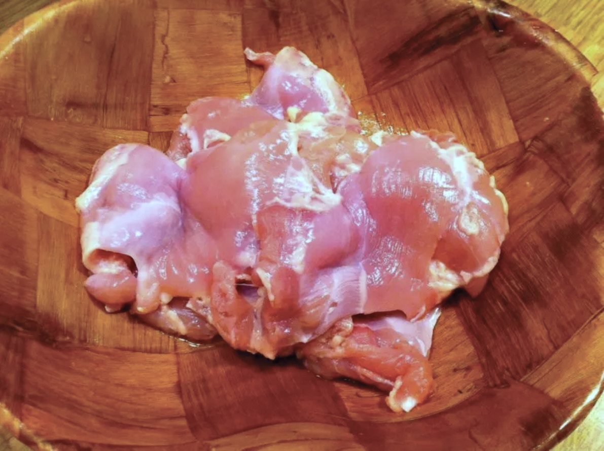 500 g mięsa z wyluzowanych udek kurczaka (udka są bardziej soczyste niż pierś)