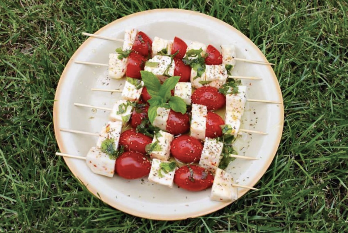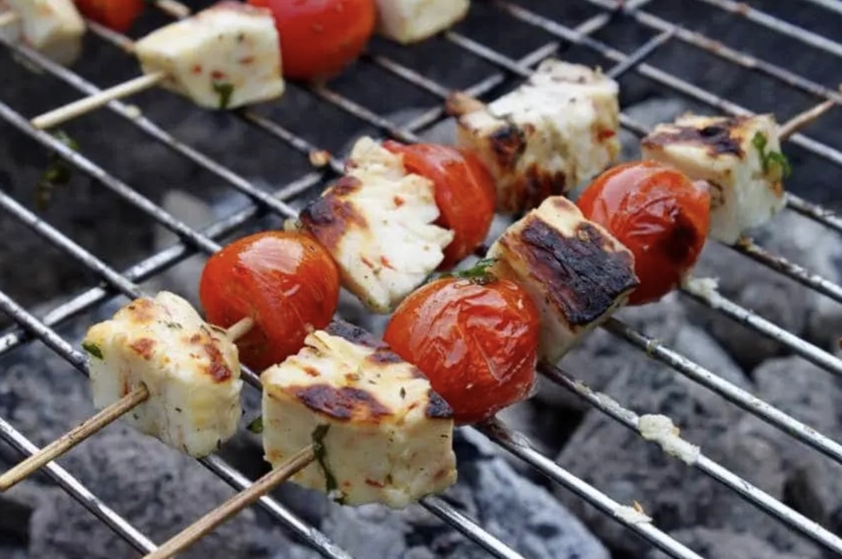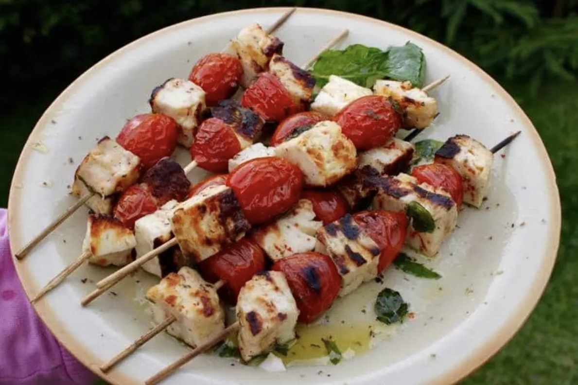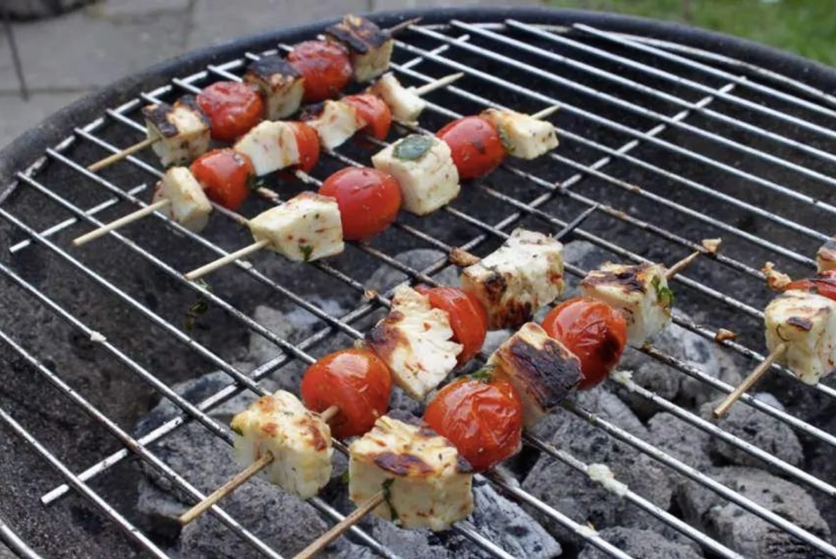 Grillowanie: Grilluj krótko na ruszcie (nad mocno rozgrzanymi węglami pokrytymi białym nalotem), aż ser się przyrumieni i będzie chrupiący z zewnątrz, a w środku miękki, natomiast skórka na pomidorkach lekko popęka.