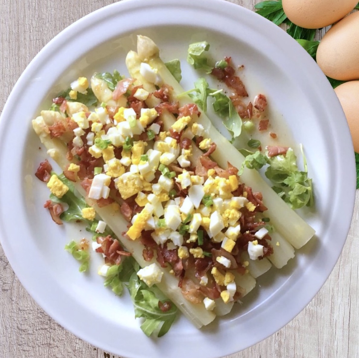 Szparagi z szynką to prosta i przepyszna przystawka. Szparagi wystarczy obrać i ugotować w lekko osolonej wodzie, a w tym czasie na patelni, na maśle przesmażyć szynkę i osobno ugotować jajko. Oczywiście szynkę możesz użyć jaką lubisz, ja uwielbiam szwarcwaldzką. Z kolei ważne jest, by szynka przesmażona została na maśle i żeby tego masła było na koniec tyle, aby polać nim wszystkie szparagi. Całość stanowi fenomenalne połączenie delikatności szparagów z mocnym aromatem szynki i nieco przysmażonym masłem. To naprawdę pyszna rzecz.