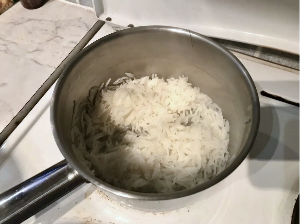 Do garnka wlej 2 szklanki gorącej wody, posól ją, zagotuj, wrzuć szklankę ryżu, a następnie gotuj na dość mocnym ogniu około 7 minut. Po kilku minutach gotowania woda z ryżu powinna niemal w całości odparować. Wyłącz zatem ogień po garnkiem, przykryj go pokrywką i pozostaw ryż na palniku, na którym się gotował. Przez kolejne kilka minut ryż basmati wchłonie resztę wody i stanie się wspaniale sypki.