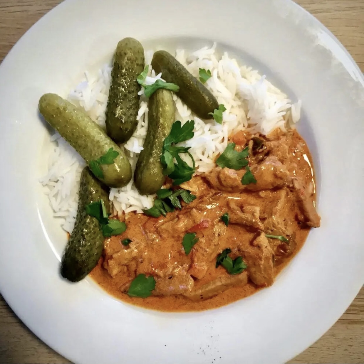 Być może masz w lodówce jakąś pastę warzywną (smarowidło). To dobry moment, aby dodać jej porządną łyżkę do sosu. Dodatek pasty warzywnej wzbogaci smak sosu. Podawaj z sypkim ryżem natychmiast po przygotowaniu. Dobrym dodatkiem będą ogórki konserwowe.