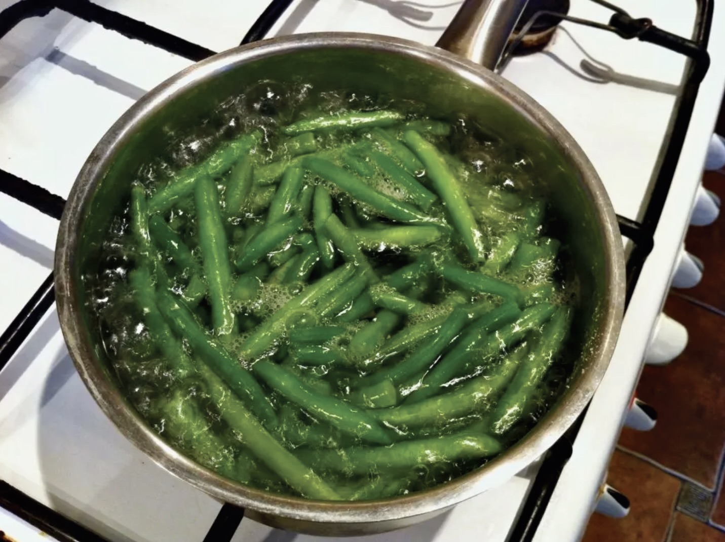 Duża garść fasolki szparagowej lub groszku cukrowego