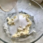 Do osobnej miski przełóż 250 gramów miękkiego masła. Wsyp do niego 100 gramów cukru i miksuj blenderem, aż uzyskasz gładką, jasną masę.