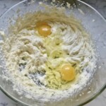 Dodaj 250 gramów cukru, startą skórkę z cytryny, wanilię, szczyptę soli oraz dwa żółtka jajek.