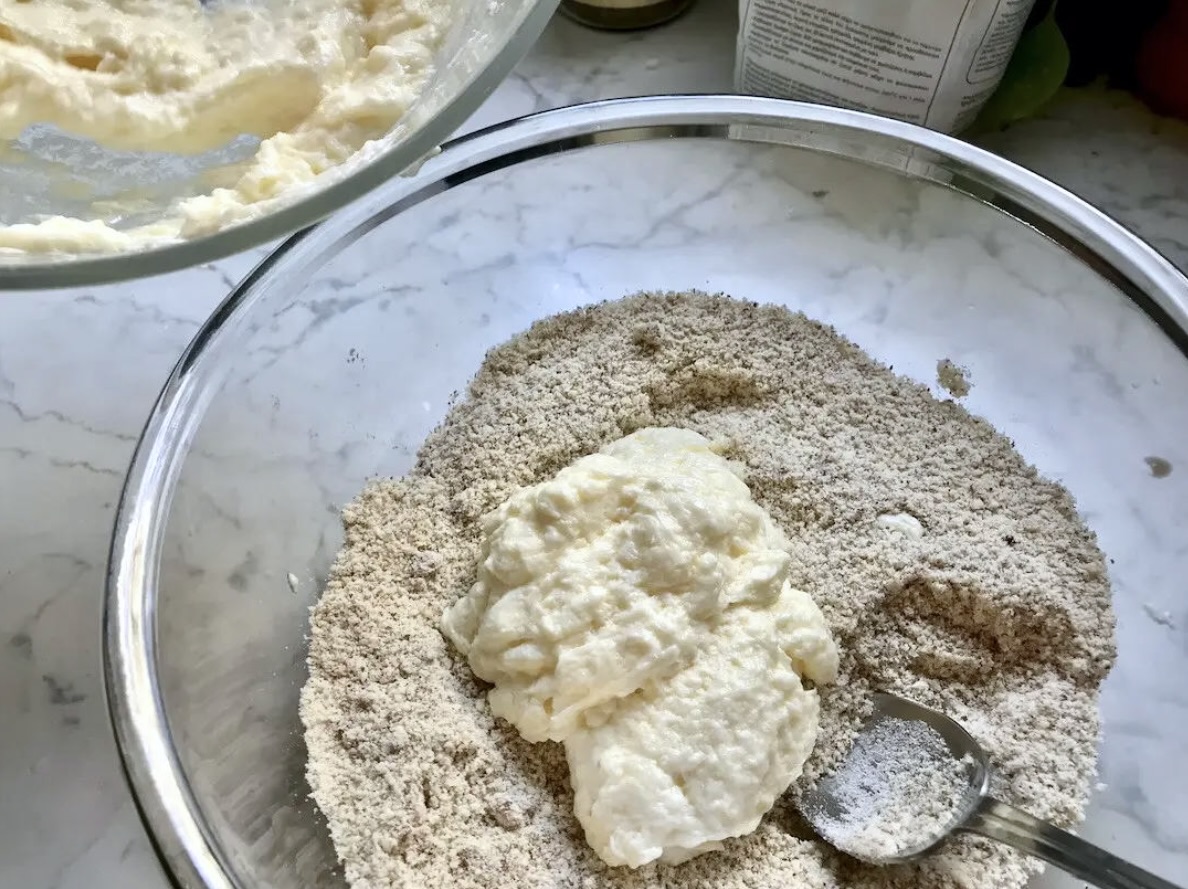 Masę jajeczną dodaj do zmielonych migdałów, a następnie dokładnie wymieszaj całość.