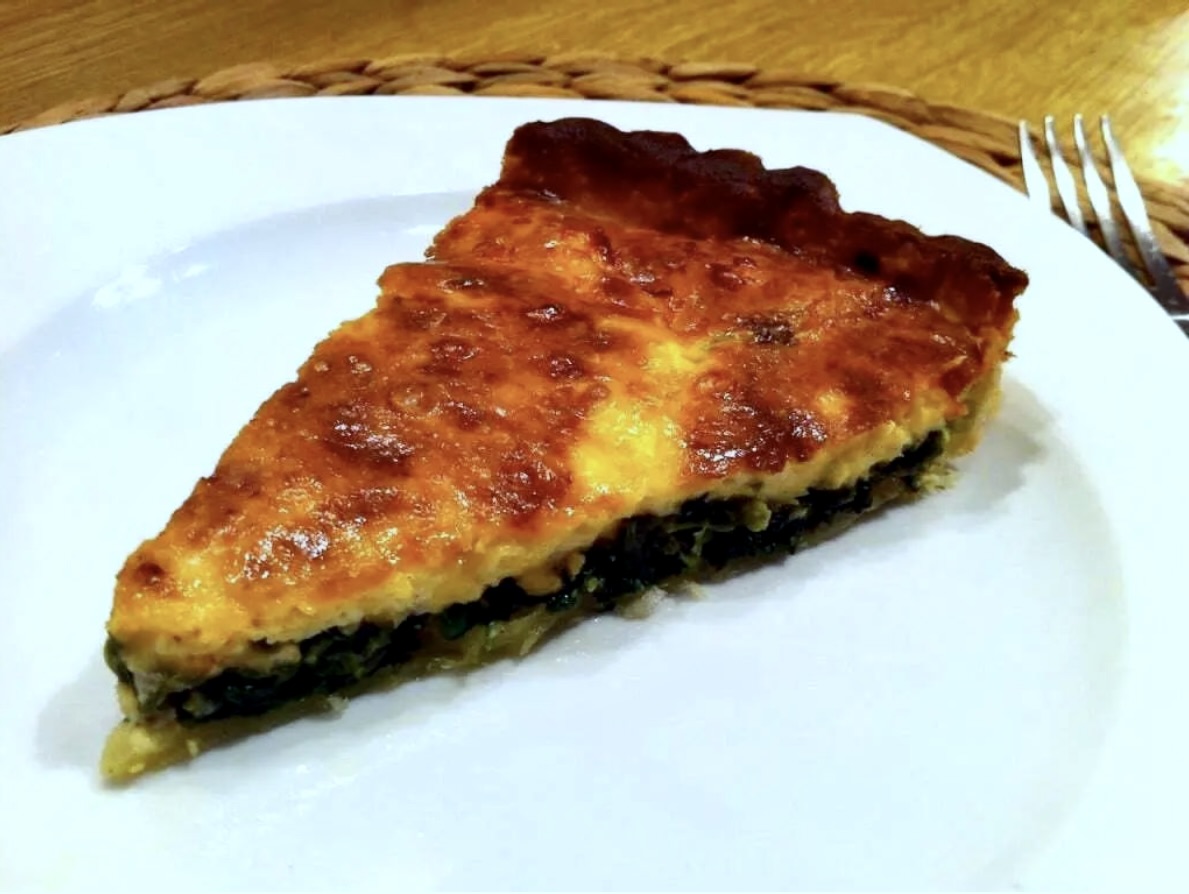 Tarta składa się z wytrawnego ciasta, farszu ze szpinaku smażonego z cebulą oraz gęstej, puszystej masy serowej, która na wierzchu tworzy chrupiącą skórkę.