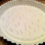 Przygotowanie ciasta: Formę na tartę wysmaruj olejem, wyłóż ciastem, dociśnij i usuń nadmiar. Nakłuj środek widelcem. Wyłóż papierem do pieczenia, obciąż (np. grochem) i wstaw do piekarnika nagrzanego do 200°C na 10 minut. Po tym czasie zdejmij obciążenie i piecz jeszcze 5 minut.