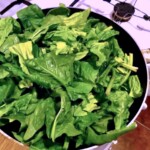 Przygotowanie szpinaku: Rozgrzej patelnię, wlej oliwę, dodaj masło i szpinak. Posól i popieprz. Smaż kilka minut.