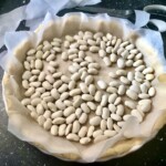Na wierzch połóż papier do pieczenia i wysyp obciążenie (np. groch lub fasolę).