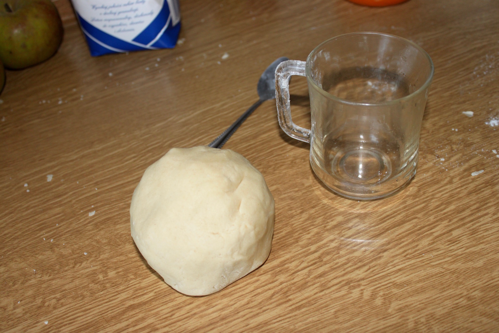Przygotowanie ciasta: Do miski przesiej mąkę, dodaj 2 łyżki cukru, sól, sodę oraz pokrojone w kostkę zimne masło. Zagniataj krótko, dolewając zimną wodę, aż powstanie jednolite ciasto. Zawiń je w folię spożywczą i odłóż do lodówki na około 30 minut.