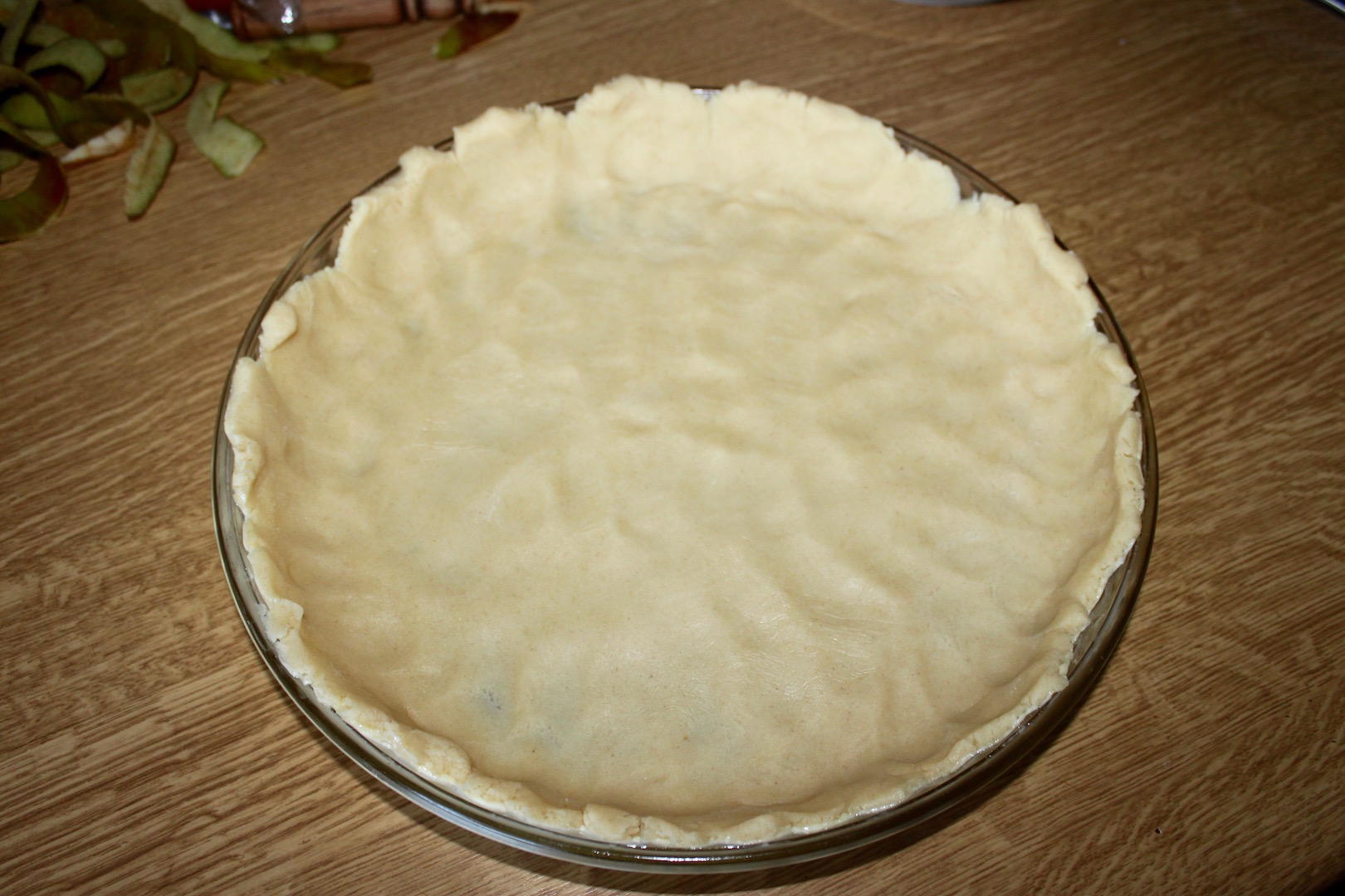 Formowanie tarty: Formę do tarty nasmaruj tłuszczem. Wyjmij ciasto z lodówki, ułóż w formie i ugniataj ręką (możesz to robić przez folię spożywczą), aby wypełniło całe dno i boki.