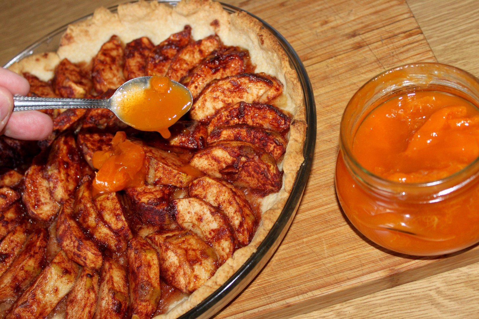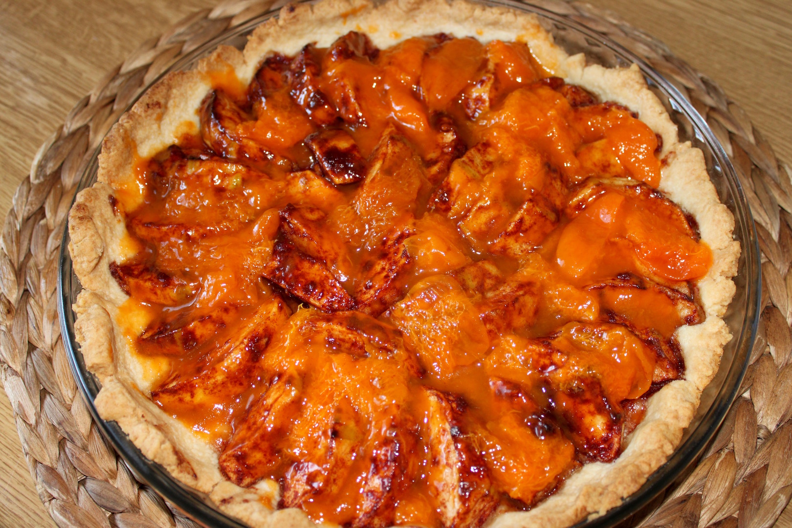 Wykończenie: Wyjmij tartę z piekarnika i pozostaw do przestygnięcia. Gdy ciasto będzie jeszcze letnie, posmaruj wierzch dżemem morelowym lub brzoskwiniowym, aby nadać mu piękny połysk i dodatkowy smak. Lub podaj z domowy roster morelowy, jak w moim przypadku.