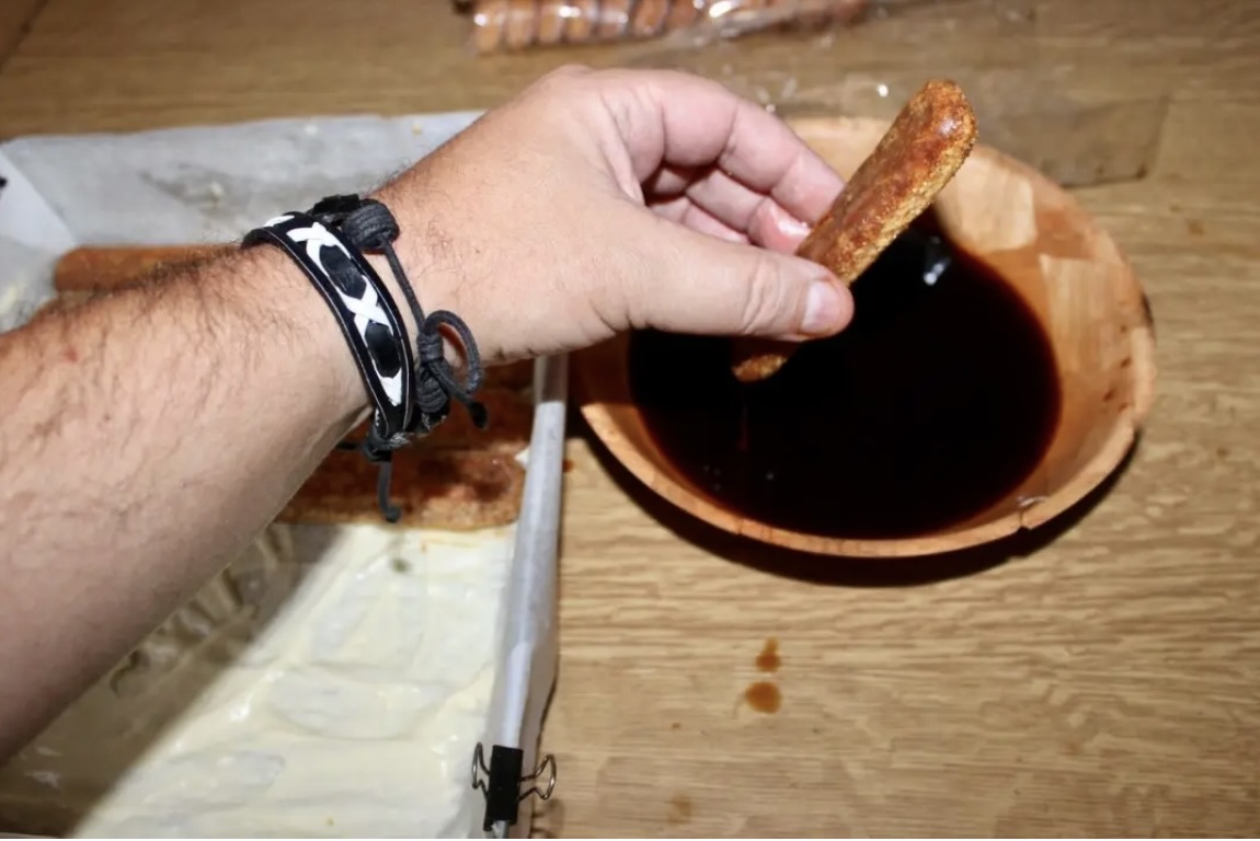 Formę o wymiarach np. 24×26 cm wysmaruj masłem i rozsmaruj na jej dnie niewielką ilość przygotowanej masy.