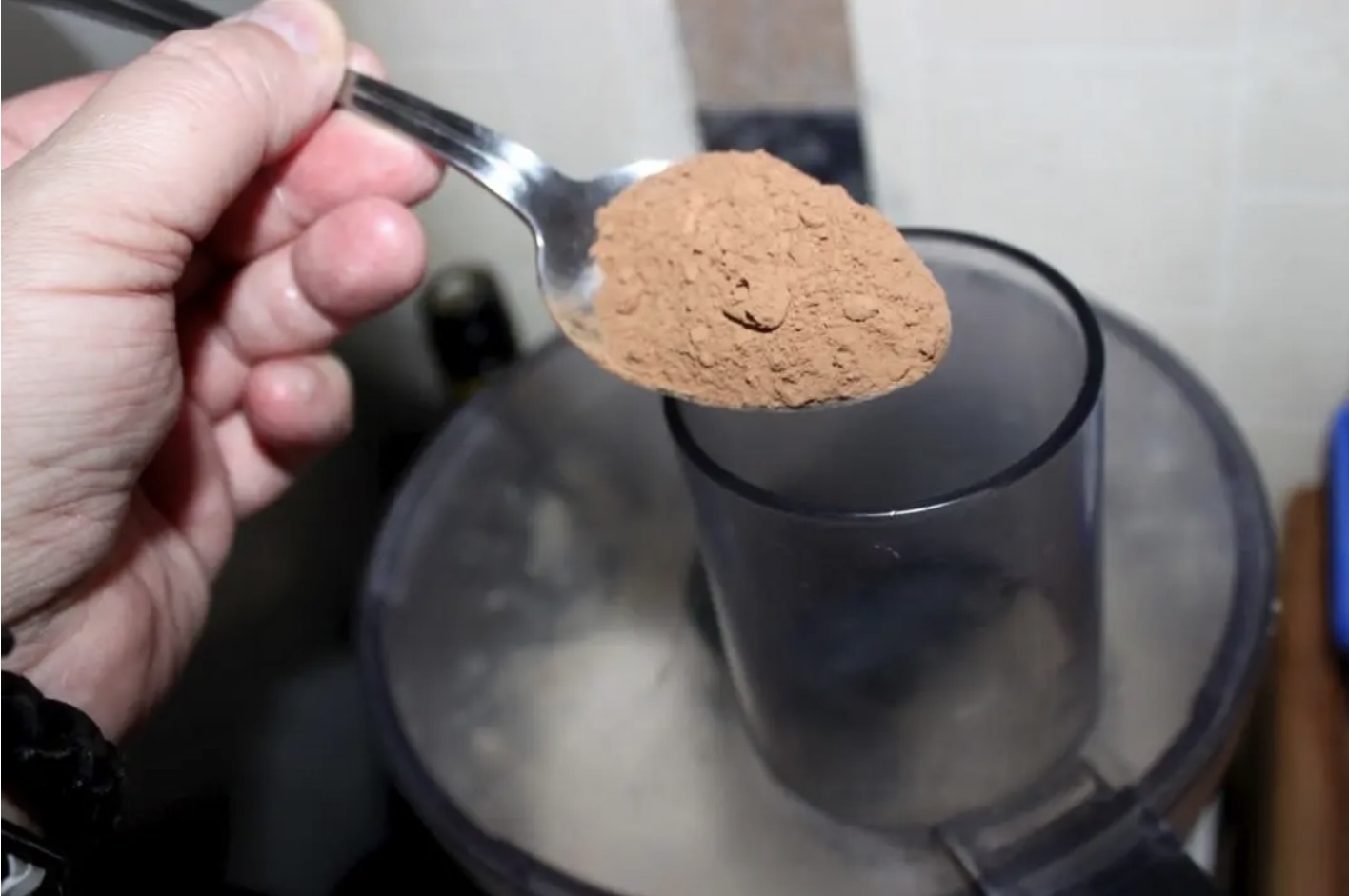 Dodawanie składników: Nie przerywając ucierania, dodaj wanilię, a następnie stopniowo wsypuj kakao.