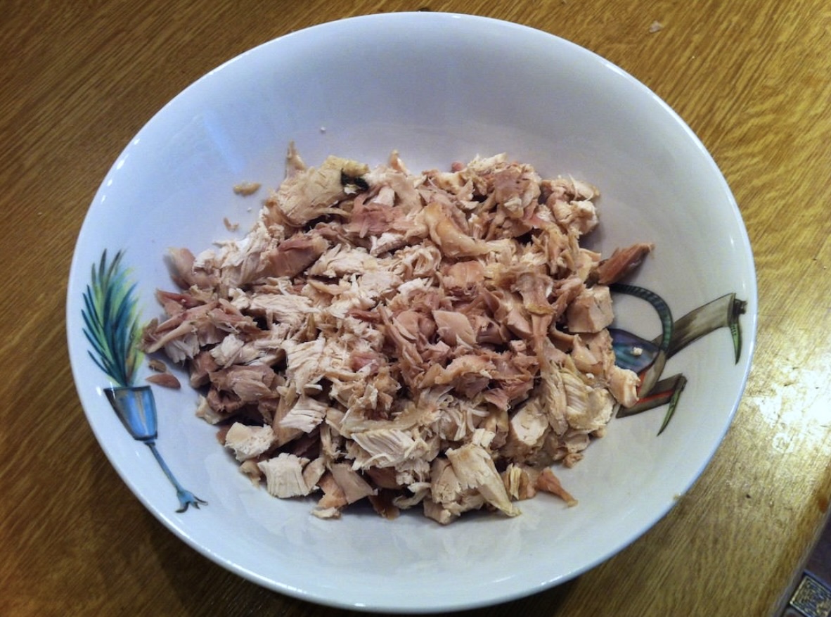 Baza mięsna: ok. 300-400 g ugotowanego kurczaka (może być mięso z rosołu), porwanego na włókna lub pokrojonego w kostkę.