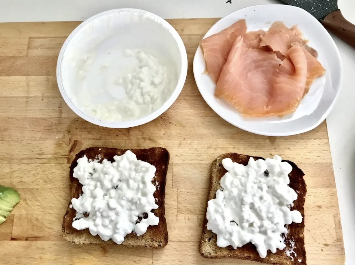 Na koniec nałóż plasterki awokado (im więcej, tym lepiej, byle nie spadały z kanapki).