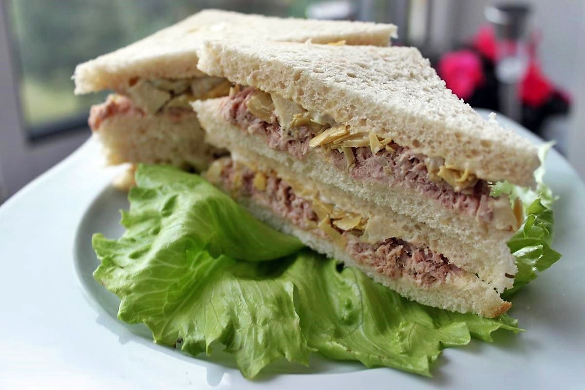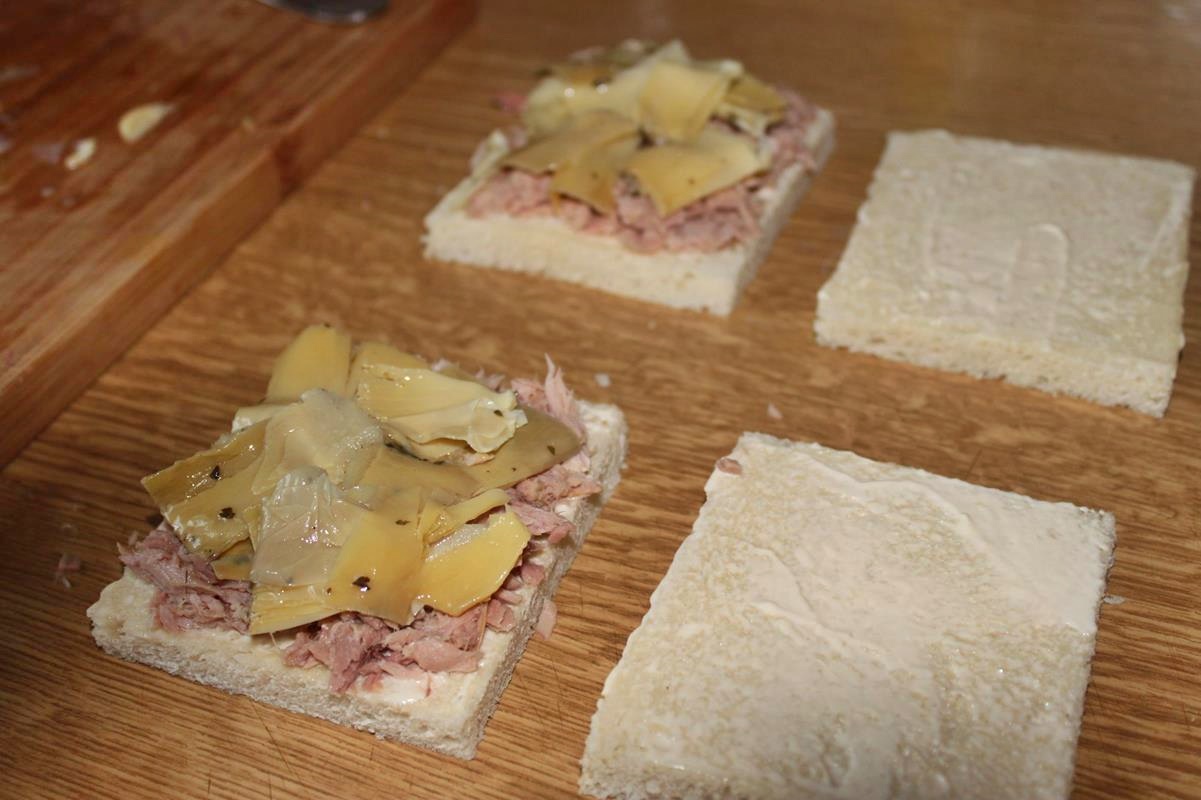 Możesz zrobić kanapki dwuwarstwowe (tuńczyk i karczochy osobno) lub połączyć te smaki w jednej kanapce, układając warstwę karczochów bezpośrednio na tuńczyku.