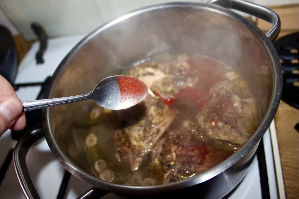 Wsyp łyżeczkę mielonej, słodkiej papryki oraz 2 łyżeczki swojej ulubionej, intensywnej przyprawy (np. mieszanki kminu rzymskiego, kolendry i anyżu).