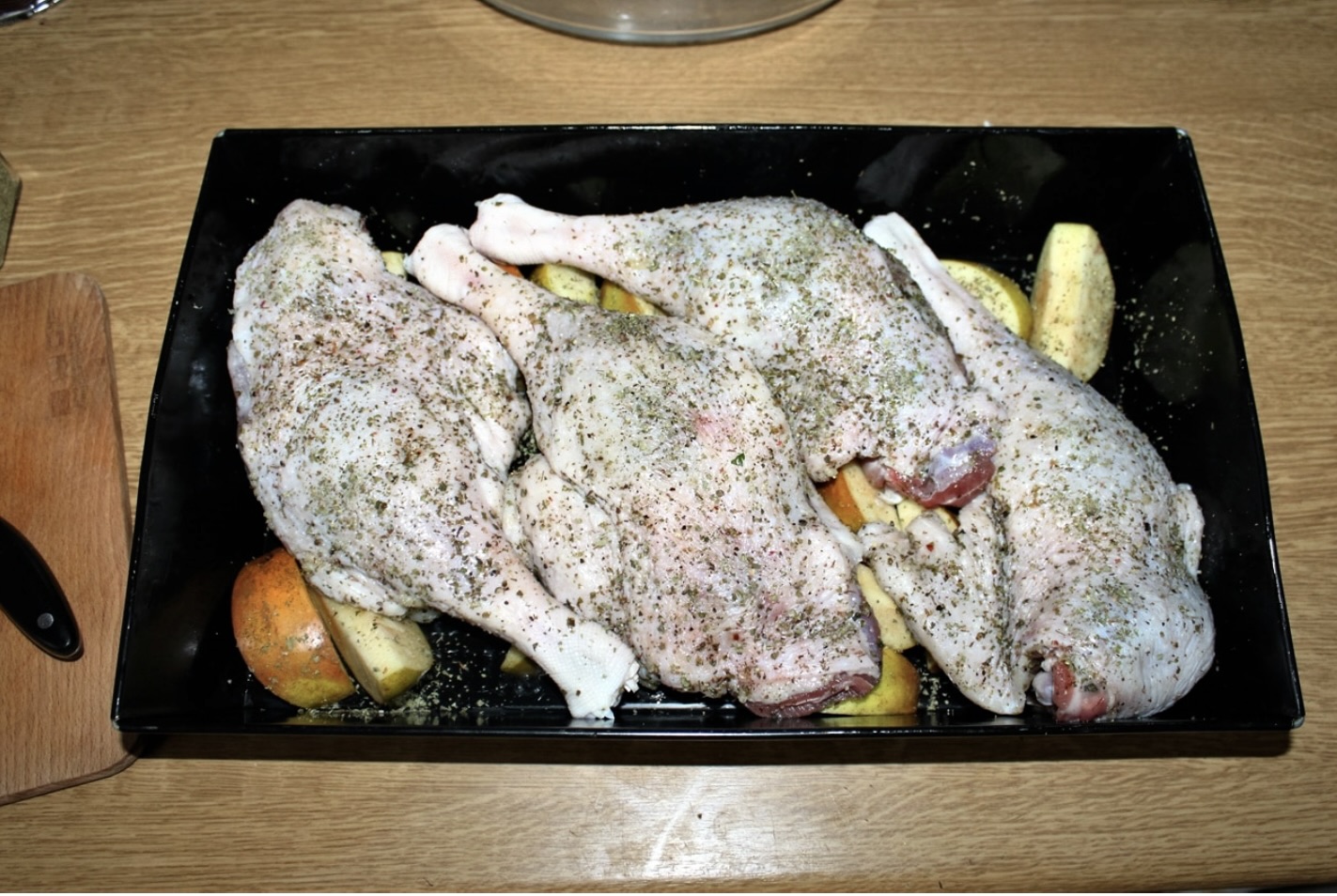 Na jabłkach połóż gęsie nogi skórą do góry.