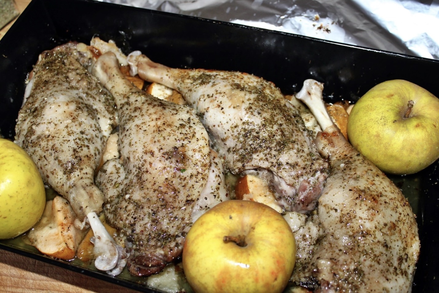 Udo z gęsi pieczone z jabłkami